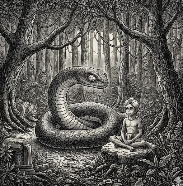 Dans Le Livre de la jungle, le serpent Kaa essaie de persuader Mowgli avec des arguments très concluants pour parvenir à un repas conclusif.
