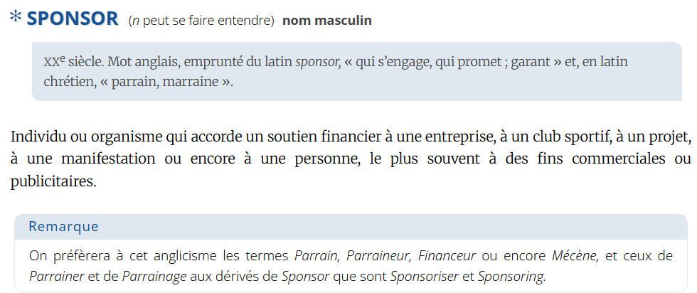 Voir « sponsoring » et « sponsoriser » dans le dictionnaire de ce site.