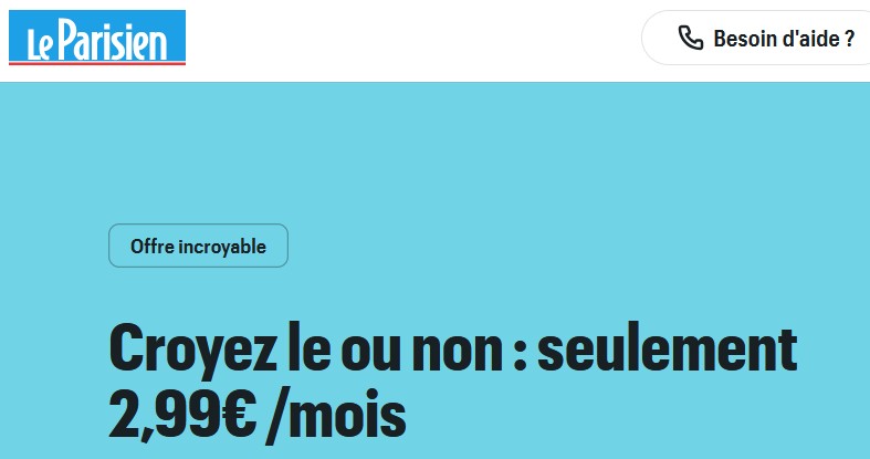 Ici, une « offre incroyable » d’abonnement au Parisien, avec 3 problèmes :