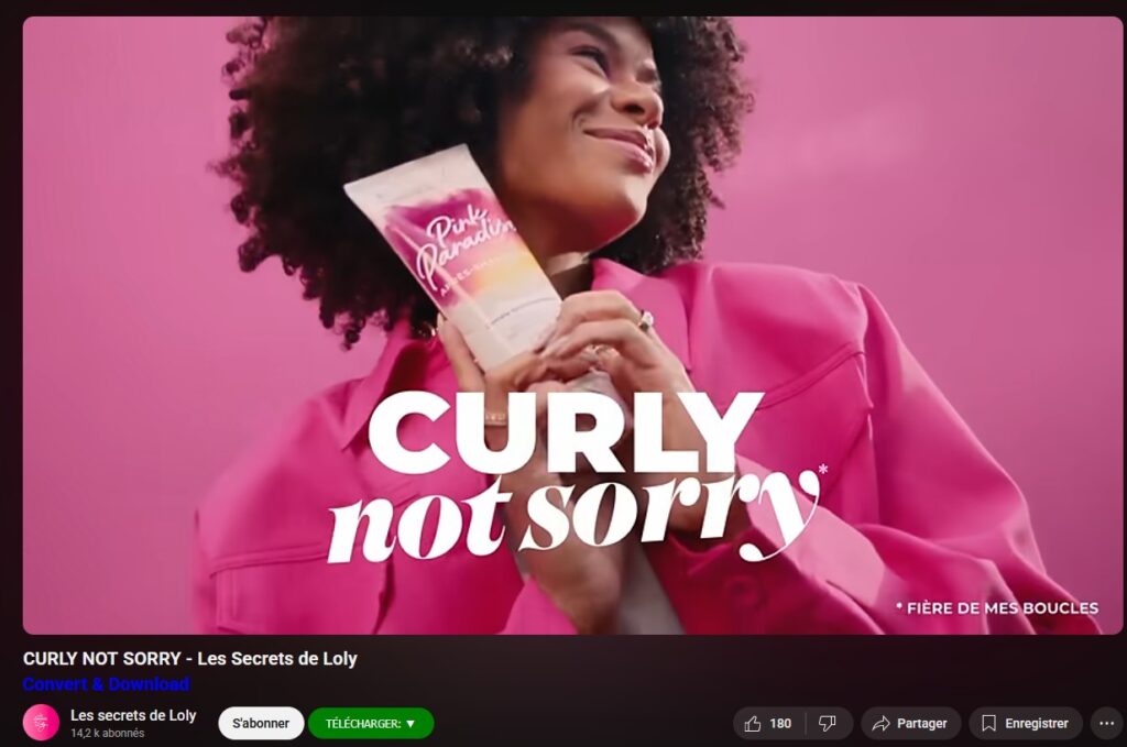 Pourtant, elle est conçue pour être affichée en France afin de promouvoir une marque française : Les Secrets de Loly est une marque de produits capillaires et cosmétiques française créée en 2009 par Kelly Massol.
