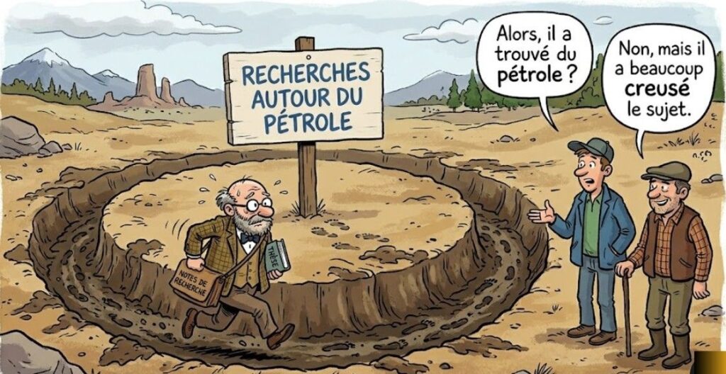 Il y a aussi les « recherches autour de ». Par exemple : « Cet universitaire fait des recherches autour du pétrole ». À force de tourner, il va peut-être finir par en trouver !