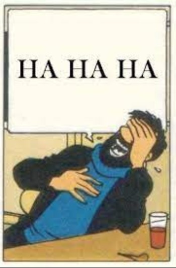 Donc rire en se penchant en arrière, rire à gorge déployée, comme le capitaine Haddock sur l’illustration ?