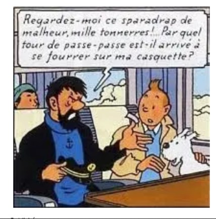 La blague récurrente suprême (et pas « ultime »), c’est le sparadrap du capitaine Haddock.